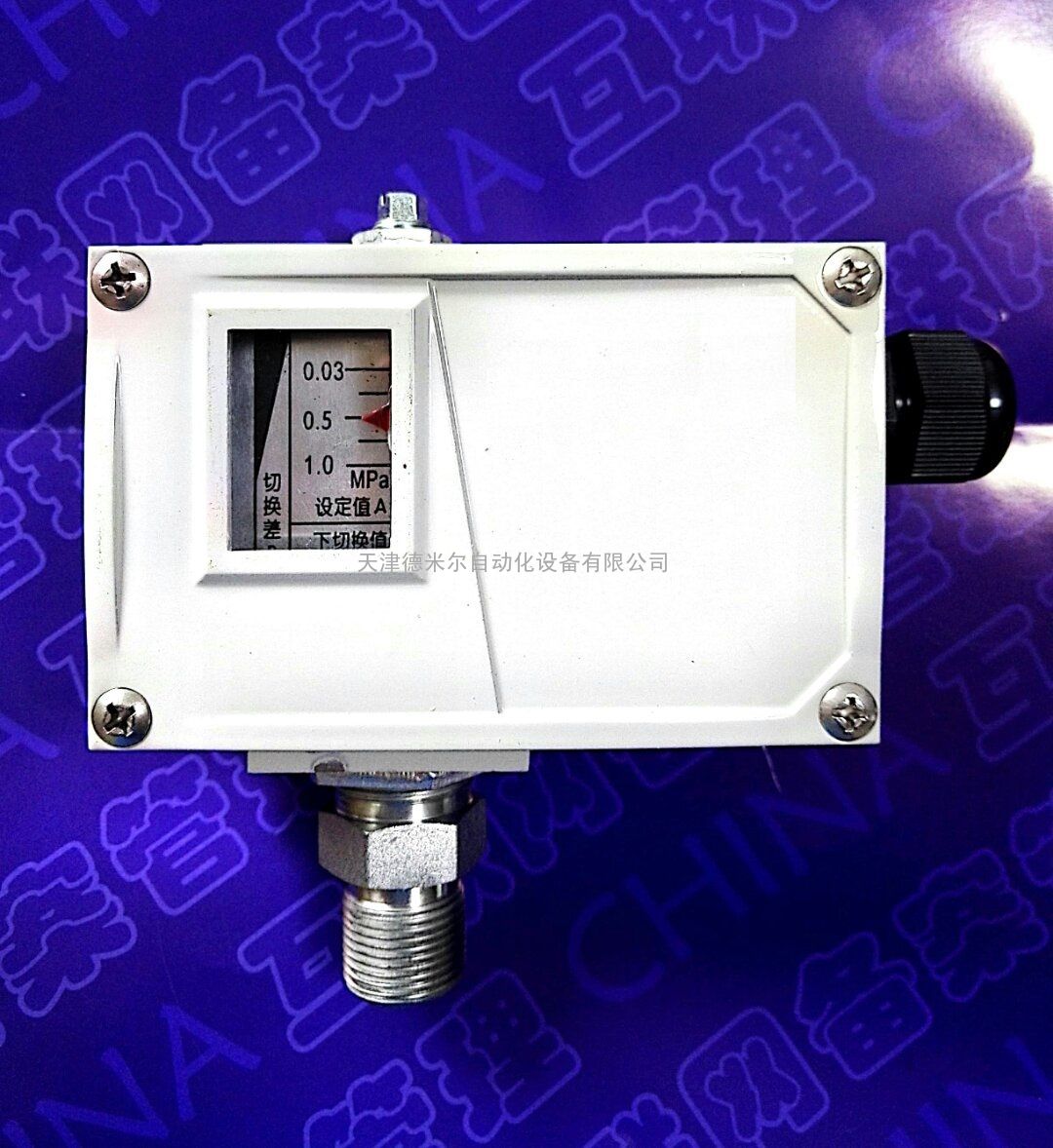 天津德米尔DMEY10-LW压力控制器,外壳采用金属材质,内部采用波纹管式感压元件,具有精度高、耐腐蚀,稳定性好等特点,适用介质为:水、气、油、制冷剂等中性、腐蚀性介质.压力控制器调节范围-0.1~40MPA,多种量程可供客户选择,*常用量程0.6MPA,设定值可调,