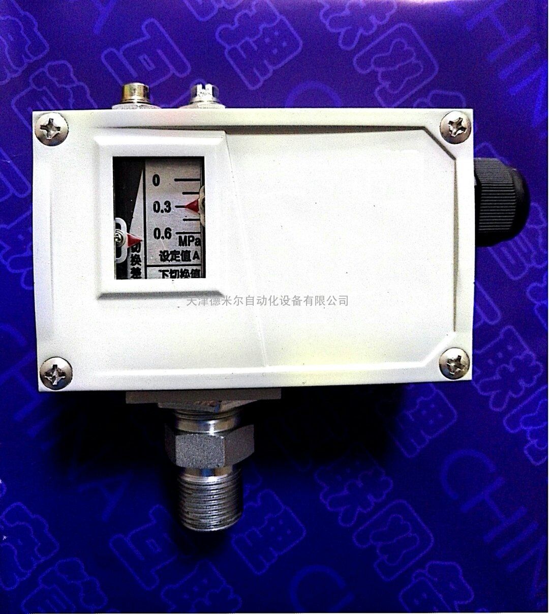 天津德米尔通用型DMEY06-LW压力控制器0.03-0.6mpa压力开关,外壳采用金属材质,内部采用波纹管式感压元件,具有精度高、耐腐蚀,稳定性好等特点,适用介质为:水、气、油、制冷剂等中性、腐蚀性介质.压力控制器调节范围-0.1~40MPA,多种量程可供客户选择,广泛应用于水泥、冶金、电力、石油、化工、船舶、机械等行业的气、液压设备上,进行压力监控、报警,实现二位自动控制。
