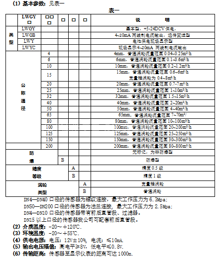 天津德米尔DEMIER系列LWGY涡轮流量传感器(流量计),脉冲型螺纹式安装 液体涡轮流量传感器,适用于管径口径 DN4-DN40,基于力矩平衡原理,属于速度式流量仪表,具有结构简单、轻巧、精度高、复现性好、反应灵敏,安装维护使用方便等特点,与显示仪表配套使用,适用于测量封闭管道中与不锈钢1Cr18Ni9Ti、2Cr13及刚玉Al2O3、硬质合金不起腐蚀作用,且无纤维、颗粒等杂质的液体。若与具有特殊功能的显示仪表配套,还可以进行定量控制、超量报警等。适用于在工作温度下粘度小于5×10-6m2/s的介质,对于粘度大于5×10-6m2/s的液体,要对涡轮流量计涡轮流量计传感器进行实液标定后使用。