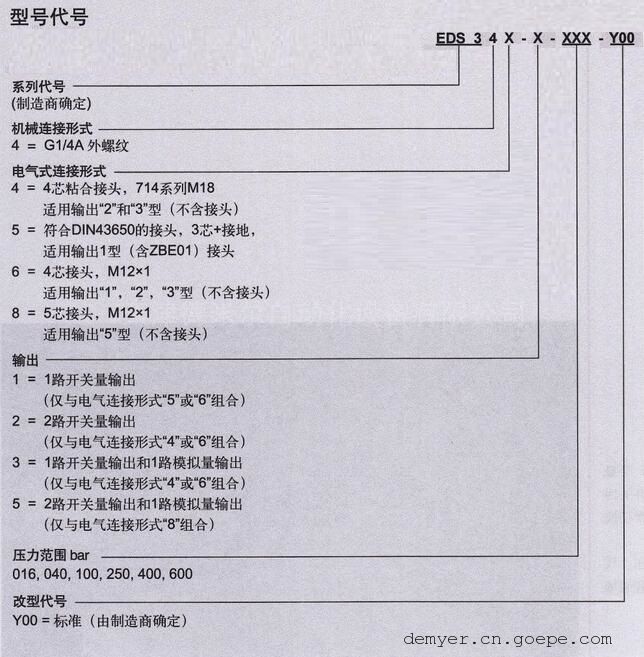 EDS344-2压力继电器 0-16bar 100bar 250bar 400bar压力传感器,集压力测量,显示,输出、控制为一体的压力控制元件。