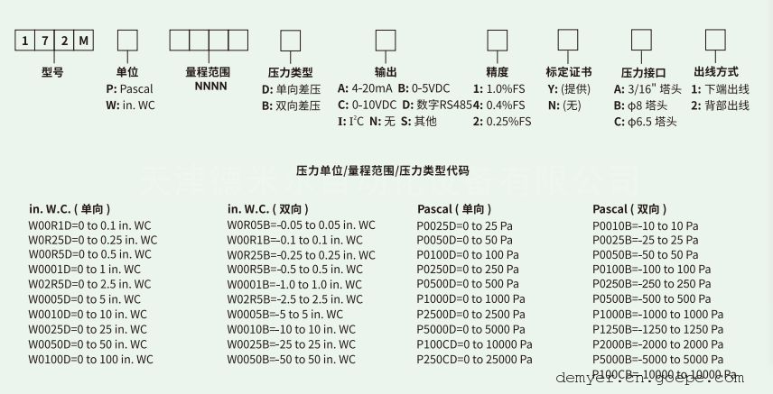 天津德米尔系列产品172MP1000DA1NA差压传感器ALPHA压力变送器alpha差压变送器,可用来测量差压或表压,输出为0-5V,0-10V,4-20mA,也可以特制为其他输出。室温下精度为0.8%FS,0.4%FS 或0.25%FS。单向小量程0~10Pa ,大0~25Kpa;双向小量程±10PA;大±10KPA 。适用于35mm 导轨安装。电路联接采用5mm 可插拔欧式接线端子,具有装拆简单快捷的特点。Model 167 还装有红色和绿色的发光管。绿色发光管的发光强度随着压力变化而变,红色表示过载。这就可以使用户很直观地了解该传感器的工作状态。